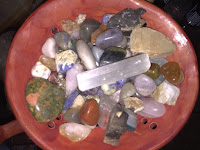 3. Hold your gemstone in your hand or place in your pocket or by you. Then apply your essential oil of choice over your third eye, behind your neck, and rub hands together and then inhale a deep breath.